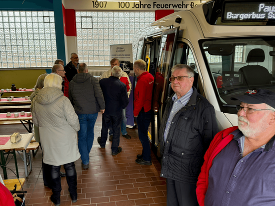 Vor und nach den Reden stand der neue Bus im Mittelpunkt und wurde von Interessierten gründlich in Augenschein genommen. Es handelt sich um einen MAN TGE, der speziell für den Bürgerbusverkehr modifiziert wurde. Der Umbau erfolgte in nur drei Monaten durch die Spezialfirma Tribus im niederländischen Utrecht. Das Ergebnis ist ein modernes Niederflurfahrzeug, das einen barrierefreien und komfortablen Einstieg für alle Fahrgäste ermöglicht.